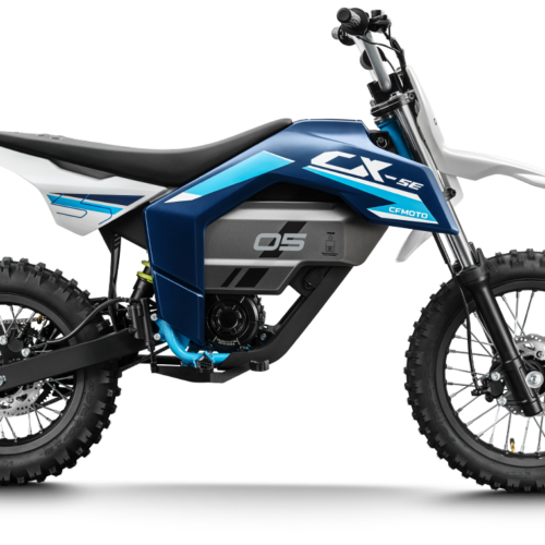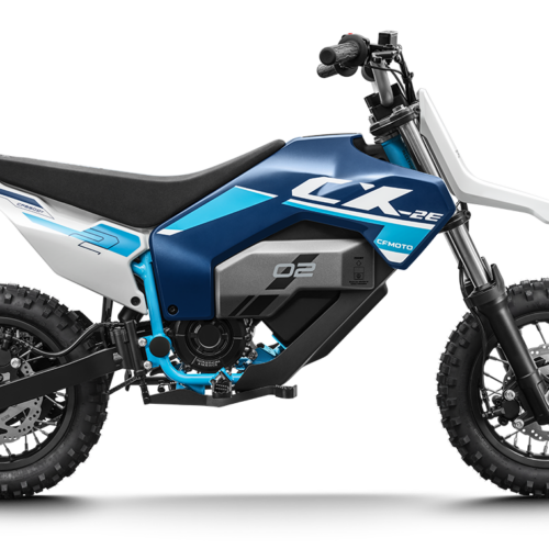 CX-5E takes everything great about CX-2E and amps it up for competent young riders. More power, more ground clearance, longer suspension, 14″ front and 12″ rear wheels and off-road tires. It is a full-fledged youth dirt bike. The fact that the battery can be easily replaced during riding sessions will make both the rider and their parents very happy.